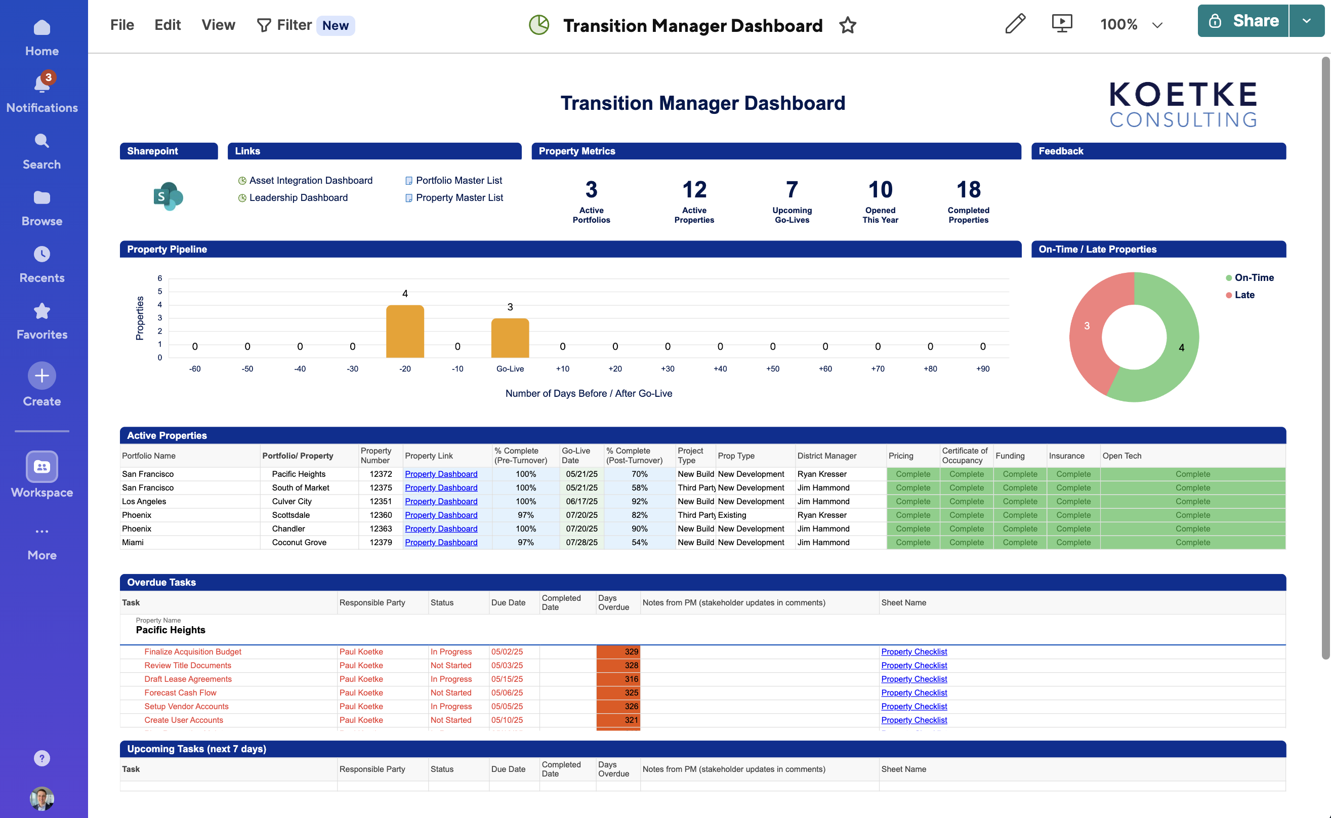 Companies growing through real estate expansion face a costly challenge: every day a new location sits unopened represents up to $10,000 in lost revenue. With 50+ properties in various stages of acquisition, permitting, construction, and launch, portfolio operators struggle to maintain visibility, standardize execution, and hit aggressive opening timelines across their pipeline.