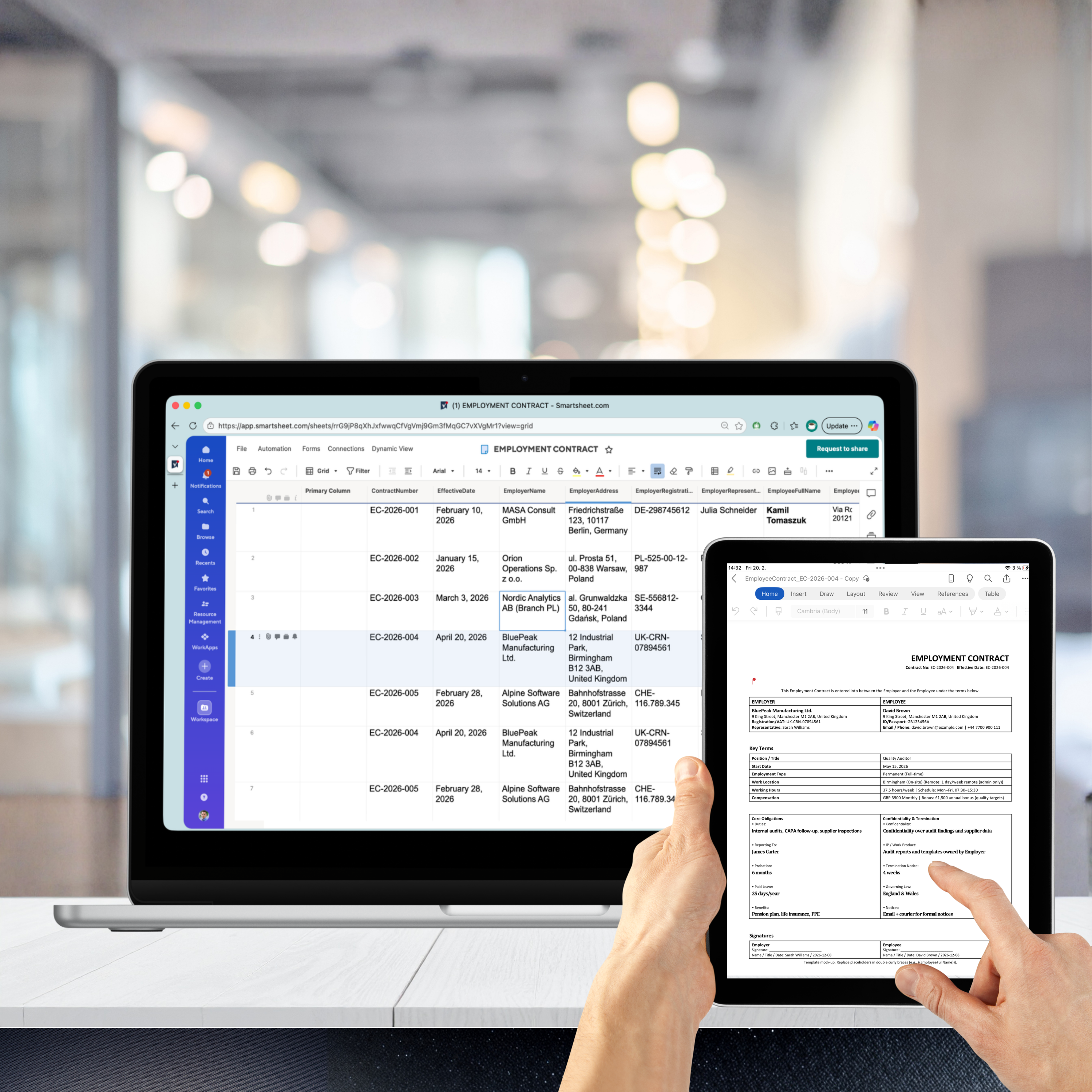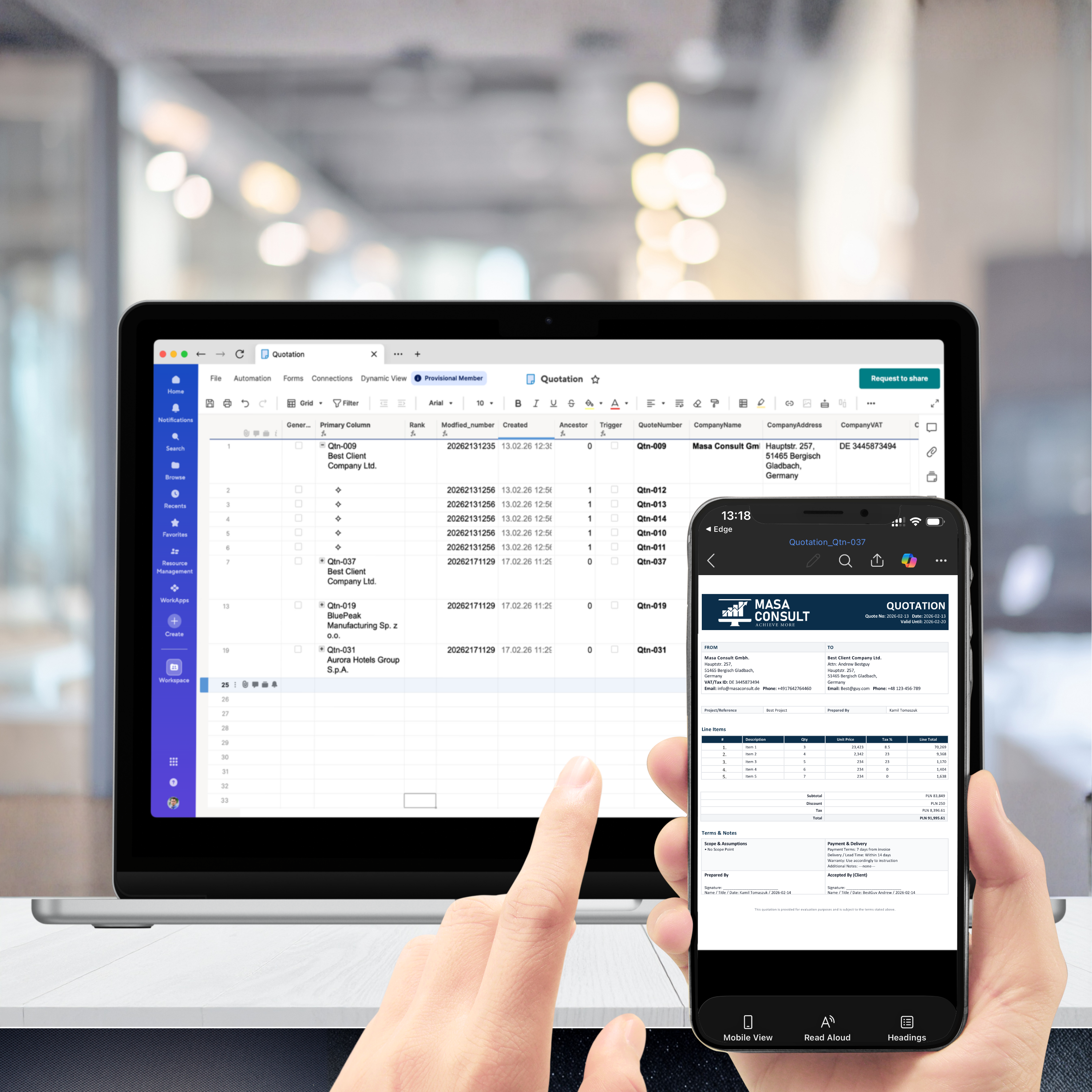 Automatically generate structured Word and PDF documents from rows, subrows, and summary fields - fully customizable, formatted, and editable.