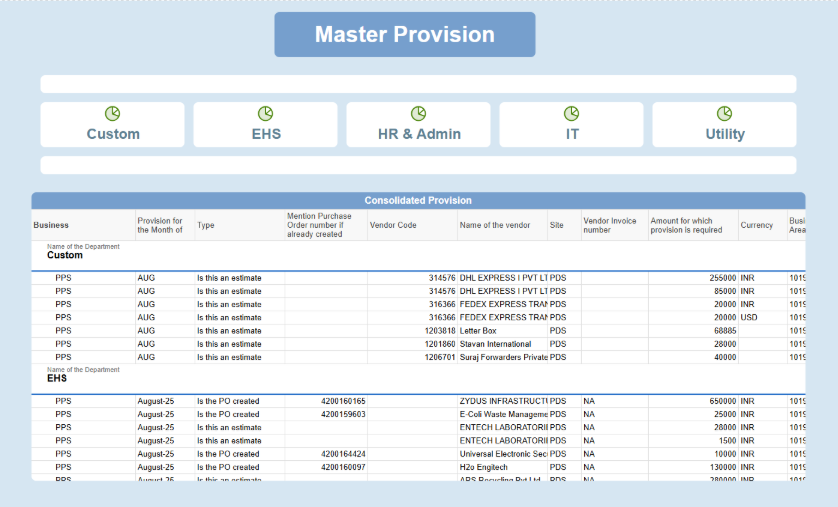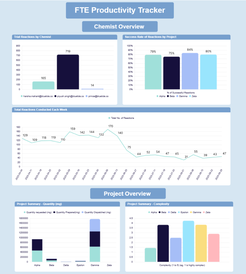 A unified Pharma solution integrating productivity, KPI, and provision tracking—eliminating manual processes and giving pharma leadership real-time operational and financial visibility.