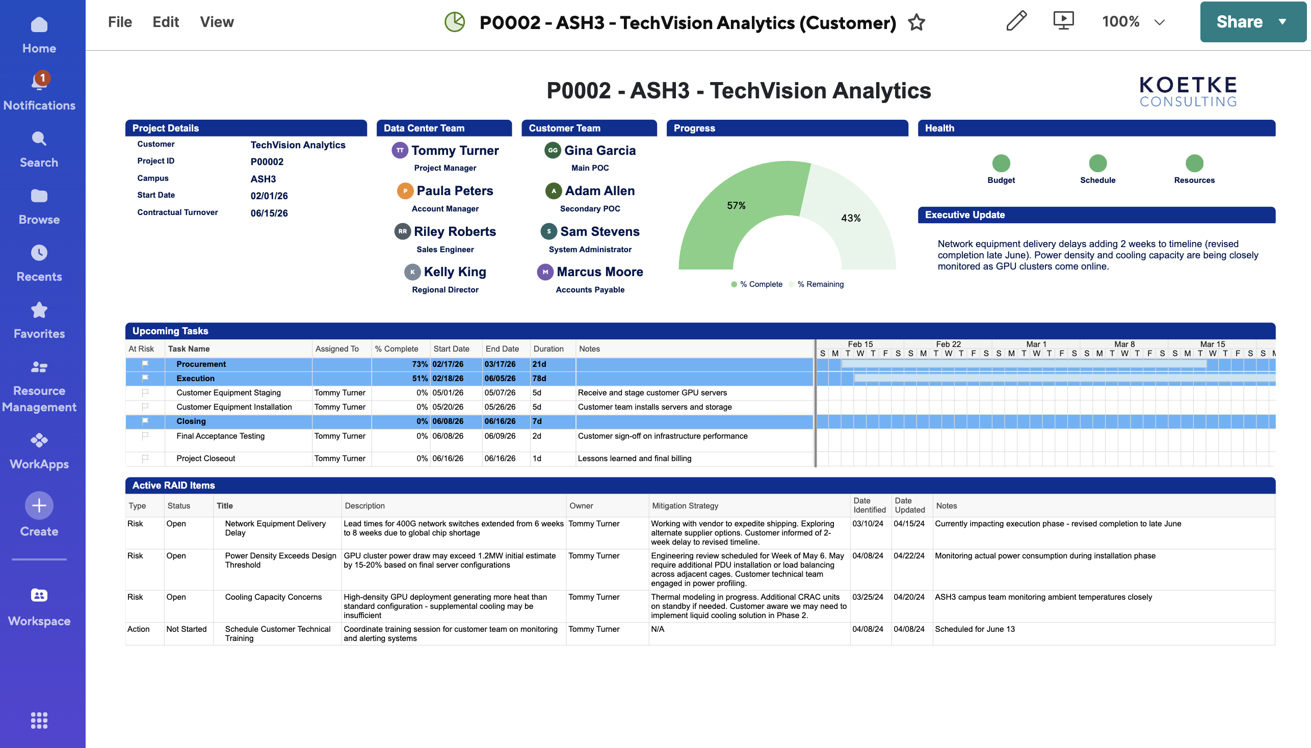 In the hyperscale era, data center operators are managing thousands of simultaneous customer deployments. But a competitive gap is emerging: leading operators are now providing customers with real-time dashboard visibility into their projects. Traditional weekly PowerPoint updates and scheduled check-in calls are a liability, not a differentiator.