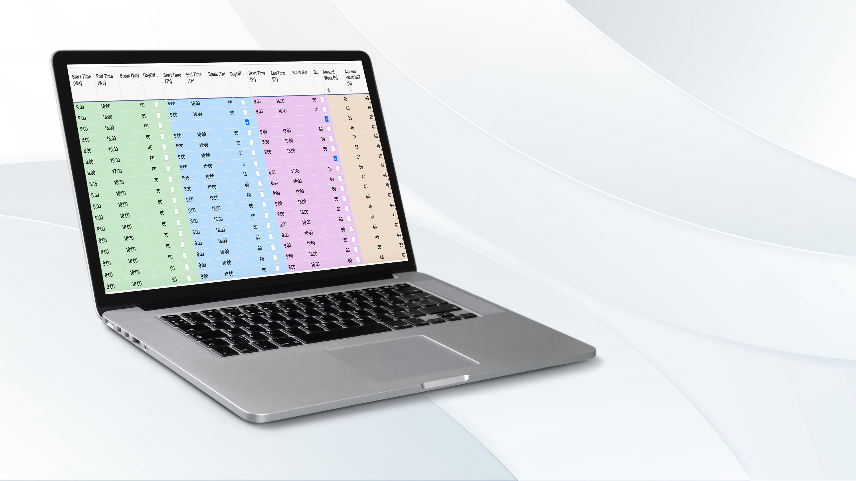 This solution helps you efficiently capture hours your employees worked, as well as break hours. Timesheets for the entire week are automatically sent to designated employees, easing both timesheet submissions and recordkeeping.