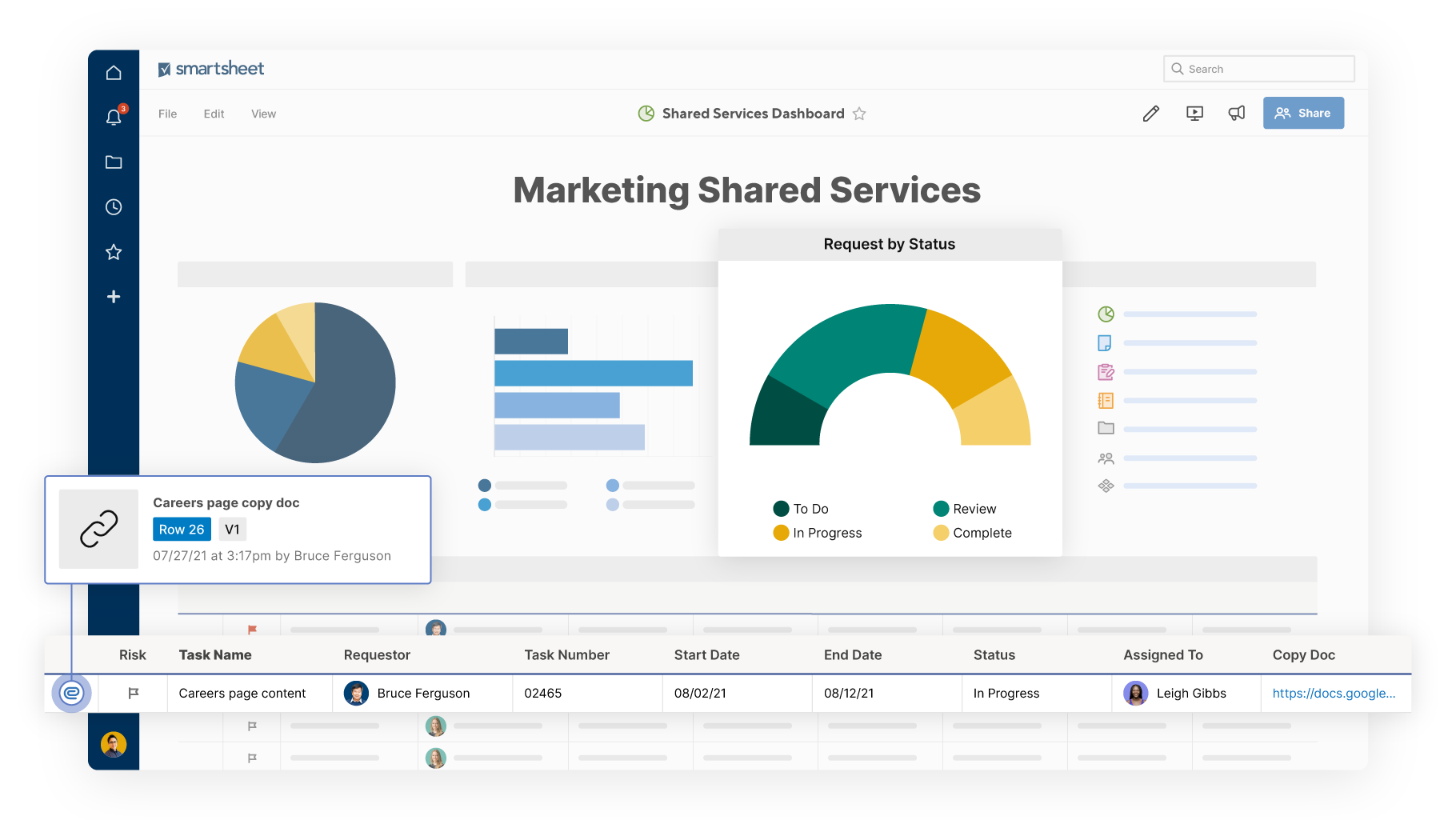 Smartsheet integrates with most enterprise systems and apps right from day one, bringing together people, processes, and technology to give everyone the real-time insights they need to innovate and execute dynamically.