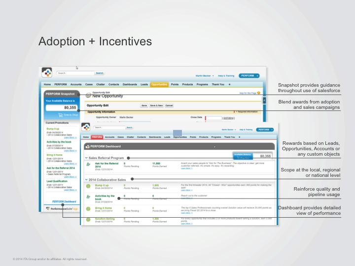 Overview: PerformanceSuite claims to boost salespeople adoption of CRM systems while cutting the work of admins in half. It can recognize multiple reps for lead generation, order fulfilment, and build non-cash incentives, merchandise and rewards programs.