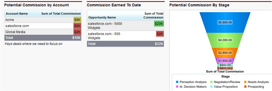 Overview: This app shows projected commissions during each stage in the pipeline for every opportunity. It’s primarily focused on sales reps calculating their own compensation, while helping them focus on their best opportunities.