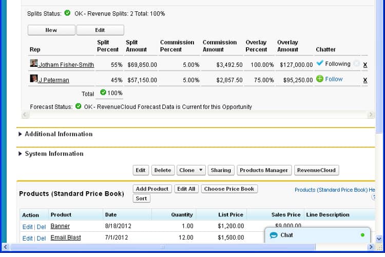 Overview: As the name implies, this app runs simple commissions on revenue, gross margin, per unit, and bonuses. It supports multiple commission payees per opportunity, and rates vary by item. As a simple free add-on, it gets the job done.